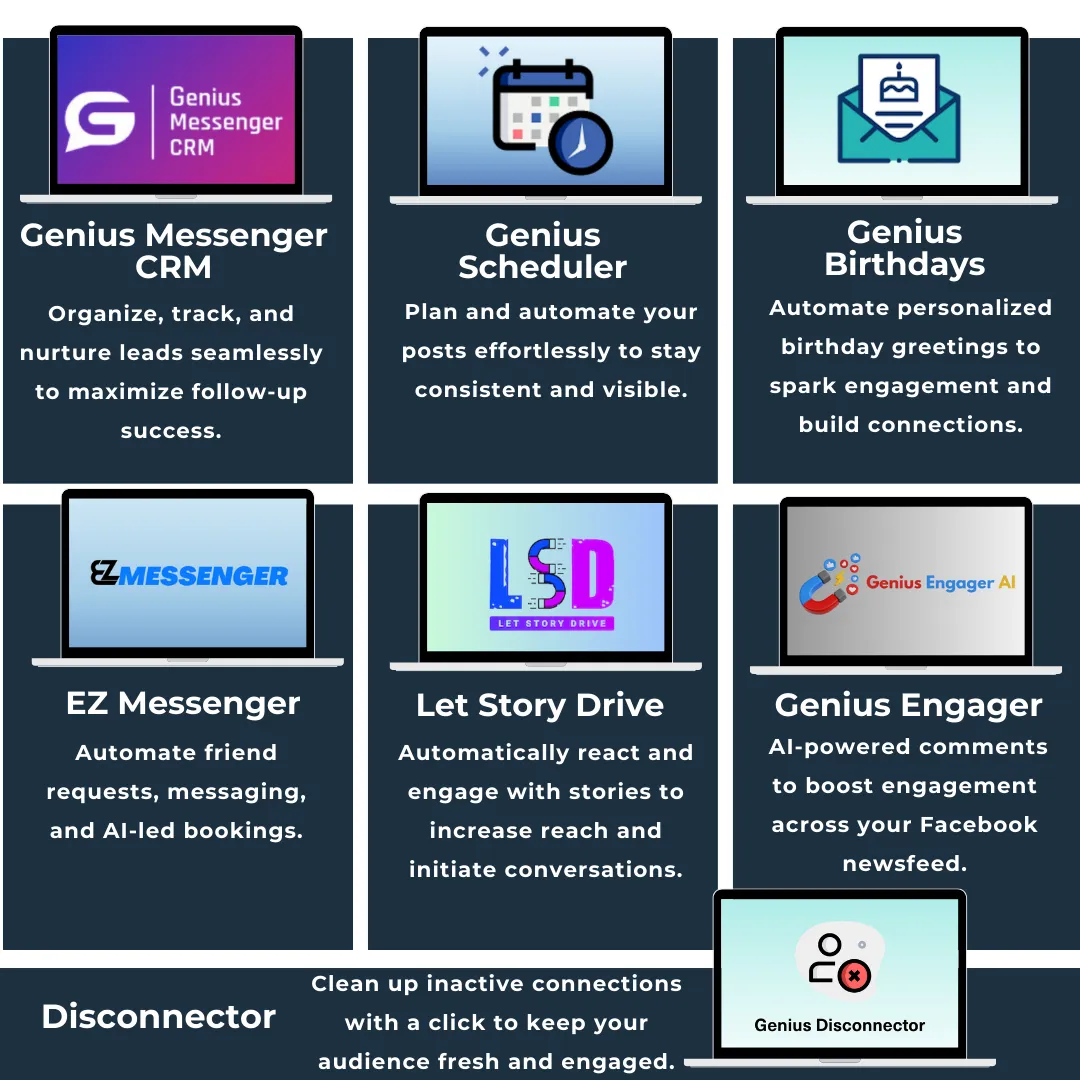 I discovered a suite of tools that seamlessly solved my biggest challenges. I finally had a system to manage all my conversations in the FB chaos. Follow-ups were handled automatically, saving me hours each day. I boosted engagement on my social media without constantly posting, and scheduling content became effortless. I could even clean up inactive connections with a click and personalize outreach, like sending birthday messages, without lifting a finger. It all worked together to free up my time and keep my business running smoothly.